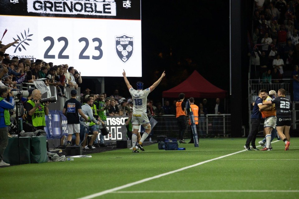 La stat > 1. Un petit point, c’est tout. C’était il y a tout juste un an, Provence Rugby et Grenoble s’affrontaient en demi-finale de la PRO D2 2023-2024. Une rencontre marquée par un suspens total, où un seul point à séparer les deux équipes. Sur la pelouse de Provence Rugby, le score a été de 22 à 23 en faveur du FC Grenoble. Une victoire des Isérois acquise grâce à la botte de l’ouvreur gallois Sam Davies, auteur de 18 points au pied en plus de l’essai de Nathan Farissier.