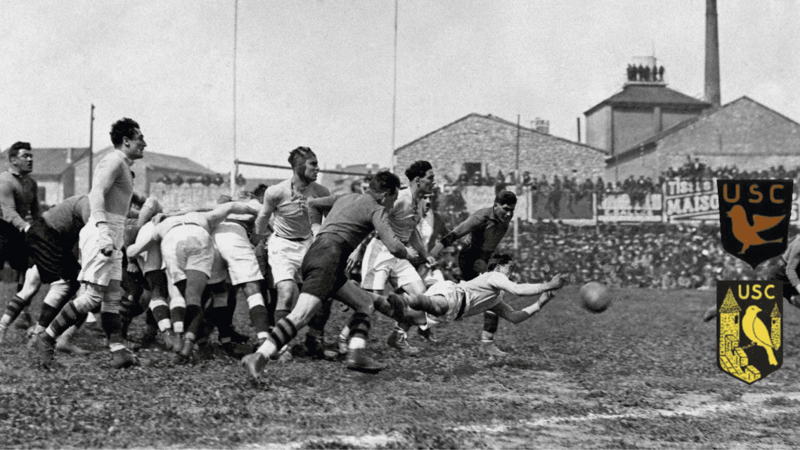 L’USC c’est tout de même 126 ans d’histoire. Créé en 1899, le club est l’un des doyens du rugby en France. Comme souvent dans l’Aude, pays viticole par excellence, la richesse est née de la terre et plus particulièrement du vin. Ainsi, les deux fondateurs ayant fait fortune exportant le fameux élixir décident d’investir leurs volontés et leur argent dans la création d’une équipe. L’US Carcassonne voit le jour et croît très rapidement dans un terroir propice et naturellement séduit par ce sport à tel point que, très rapidement, une rivalité apparait avec l’Etoile Sportive Carcassonnaise. Si la compétition a du bon, elle a aussi le malheur de disperser les forces à un moment où l’Aude a besoin d’un club référence pour se hisser en championnat de France. Les deux entités s’unissent créant ainsi l’AS Carcassonne. Le jaune et le noir sont choisis en référence aux couleurs de la ville et le surnom de « Canaris » (oiseau au plumage jaune) devient l’appellation affectueuse de la cette nouvelle équipe. Le premier blason est donc facilement esquissé, il réunit ces éléments et va durer un long moment.