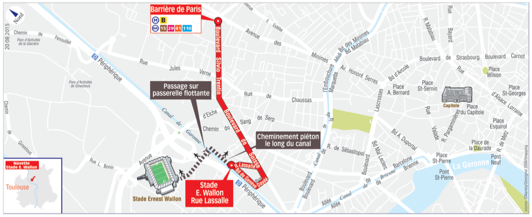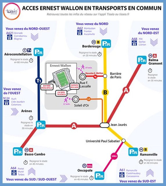 Nous vous recommandons de vous rendre au stade Ernest Wallon en transport public et d’éviter les déplacements en voiture en ville :