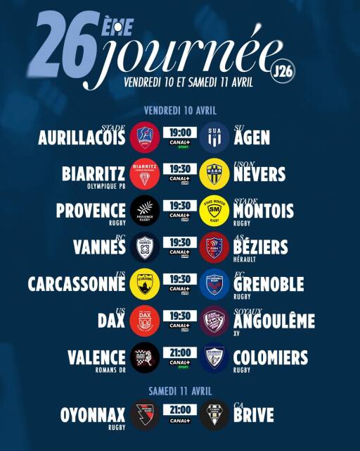 Oyonnax-Brive samedi soir, Vannes vise la barre des 100… Voici la 26e journée